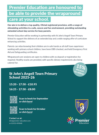 Premier Education provided extended After School Club Service here at St John's Angell Town Primary school from September 2025!